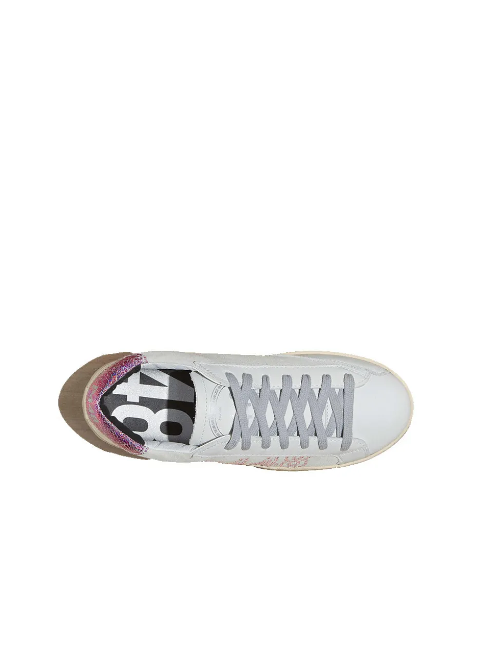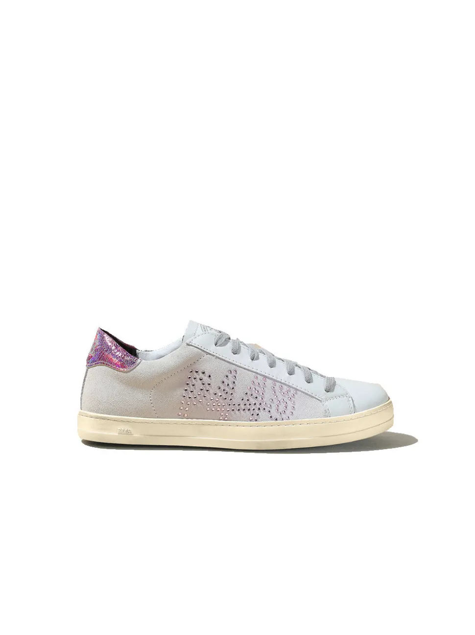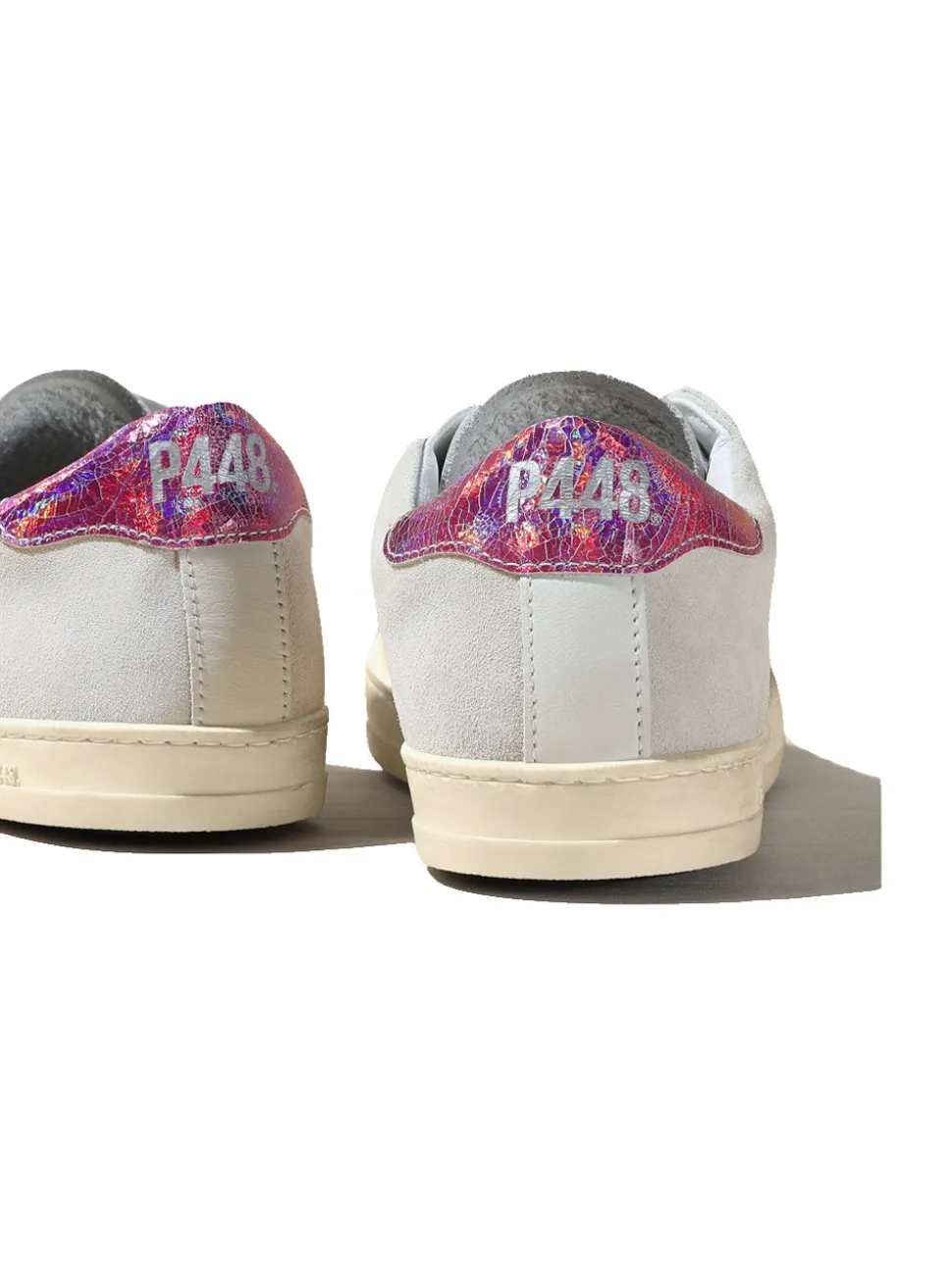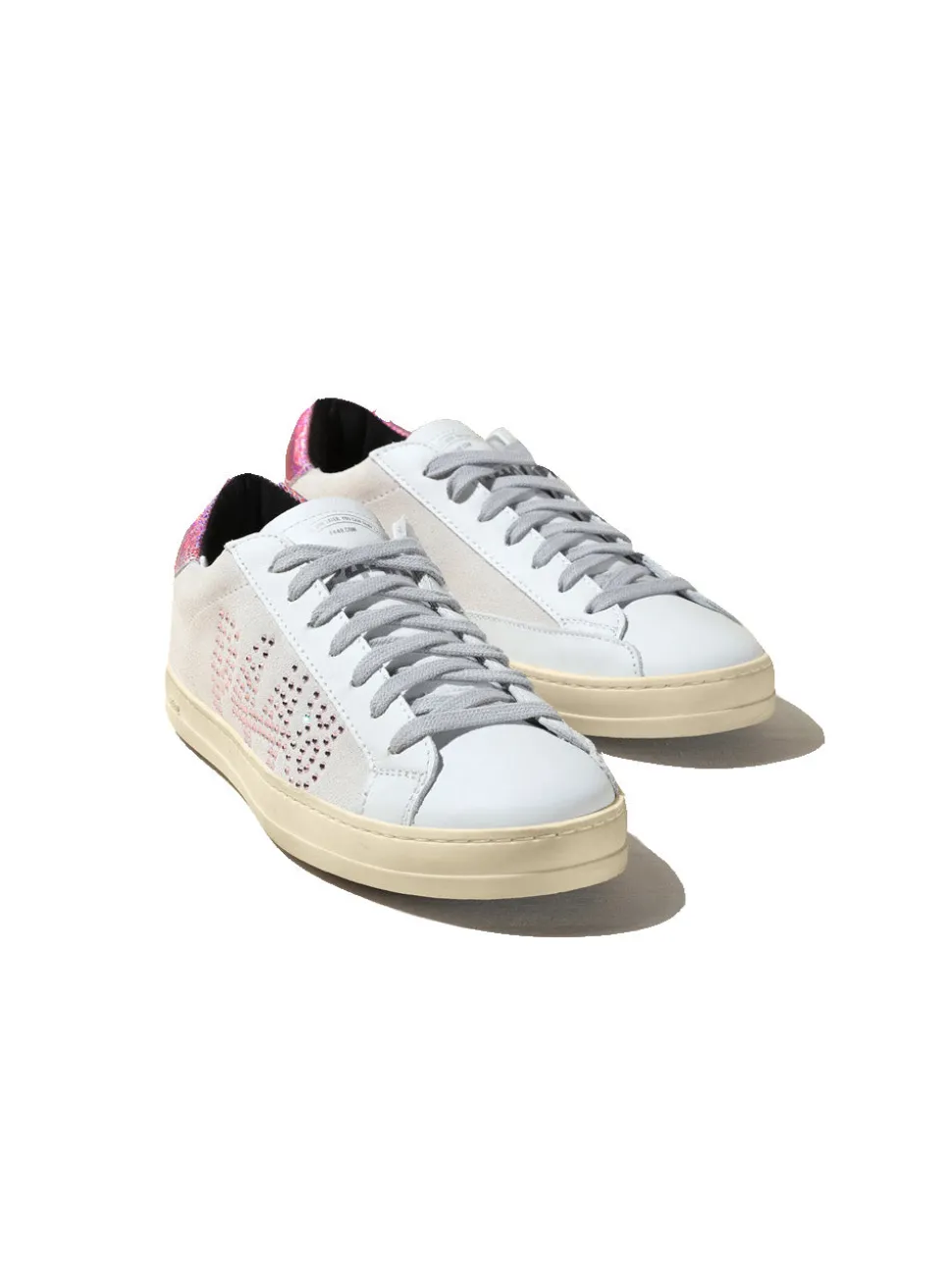 -Tomaia in suede bianco sporco con logo P448 in cristalli rosa